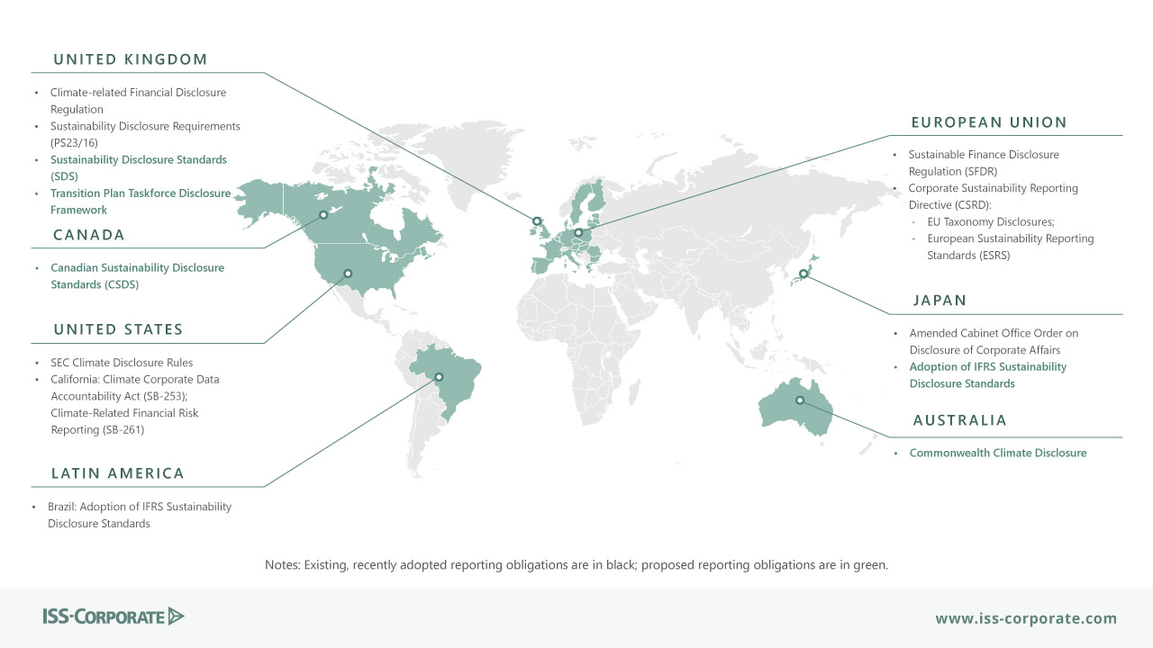 Anticipating the compatibility of sustainability disclosures compliant with ISSB-based jurisdictional law and the EU’s Corporate Sustainability Reporting Directive (CSRD) (read ISS-Corporate’s commentary ESRS: A New Chapter in Sustainability Reporting) will be of highest priority for non-EU companies with significant operations or business and financial ties to the EU.